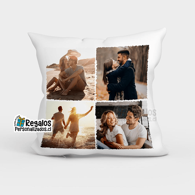 - Estampado personalizado con 4 fotos cuadradas y opción de frase al medio.