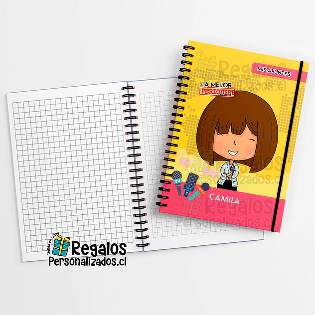 Tapas prediseñadas con nuestros avatares de Periodista, los que puedes personalizar cambiando tipo y color de cabello, agregando lentes, nombre y mensaje.