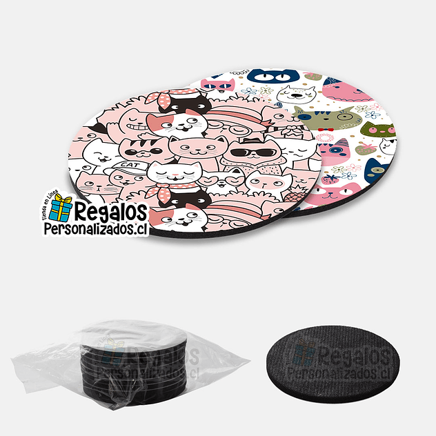 Posavaso redondo de 5mm de espesor y 10cm. de diámetro, con base de silicona negra y cubierta de tela poliéster blanco para imprimir.